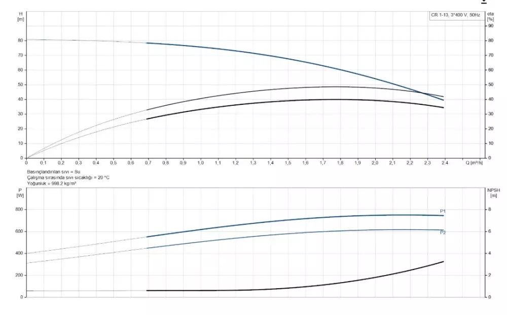 CR1-13 A-FGJ-A-E-HQQE 3x230/400V 50Hz dikey çok kademeli santrifüj pompa, endüstriyel tesisatlar, hidrofor sistemleri, proses hatları, sulama ve basınç artırma uygulamalarında yüksek verimlilik sunan profesyonel bir pompa modelidir. CR1-13 pompa, kompakt yapısı, yüksek dayanımlı paslanmaz çelik gövdesi, kararlı debi performansı ve uzun ömürlü çalışma karakteriyle öne çıkar. Enerji verimliliği, düşük bakım ihtiyacı ve sürekli çalışma koşullarına uygun tasarımı sayesinde işletmelerin güvenilir pompa seçimlerinde ilk tercihlerinden biridir.