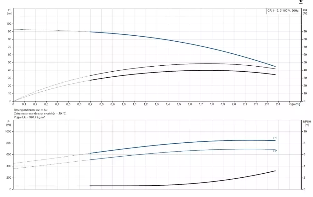 CR1-15 A-FGJ-A-E-HQQE 3x230/400V 50Hz pompa aşağıdaki durumlarda en doğru seçimdir: