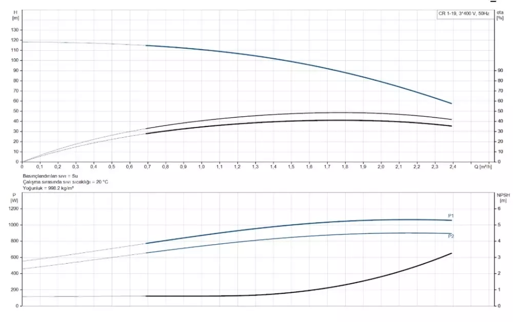 CR1-19 A-FGJ-A-E-HQQE 3x230/400V 50Hz dikey çok kademeli santrifüj pompa, yüksek basınç gerektiren endüstriyel uygulamalar, hidrofor sistemleri, proses hatları, su besleme ve basınçlandırma sistemleri için geliştirilmiş profesyonel bir pompa çözümüdür. CR1-19 pompa, 19 kademeli güçlü hidrolik yapısı sayesinde serinin daha düşük kademeli modellerine göre çok daha yüksek basınç üretir ve ağır çalışma koşullarında bile stabil performans sunar.