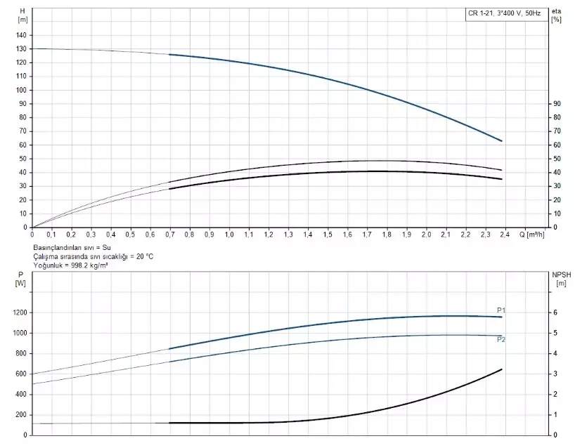 CR1-21 A-FGJ-A-E-HQQE 3x230/400V 50Hz dikey çok kademeli santrifüj pompa, yüksek basınç ihtiyacının en üst seviyede olduğu endüstriyel uygulamalar, hidrofor sistemleri, proses hatları, su besleme ve basınç artırma çözümleri için tasarlanmış profesyonel bir pompa modelidir. CR1-21 pompa, 21 kademeli güçlü hidrolik yapısı sayesinde serinin önceki modelleri olan CR1-19, CR1-17 ve CR1-15 modellerine kıyasla çok daha yüksek basınç üretir ve ağır endüstriyel koşullarda bile son derece stabil şekilde çalışır.