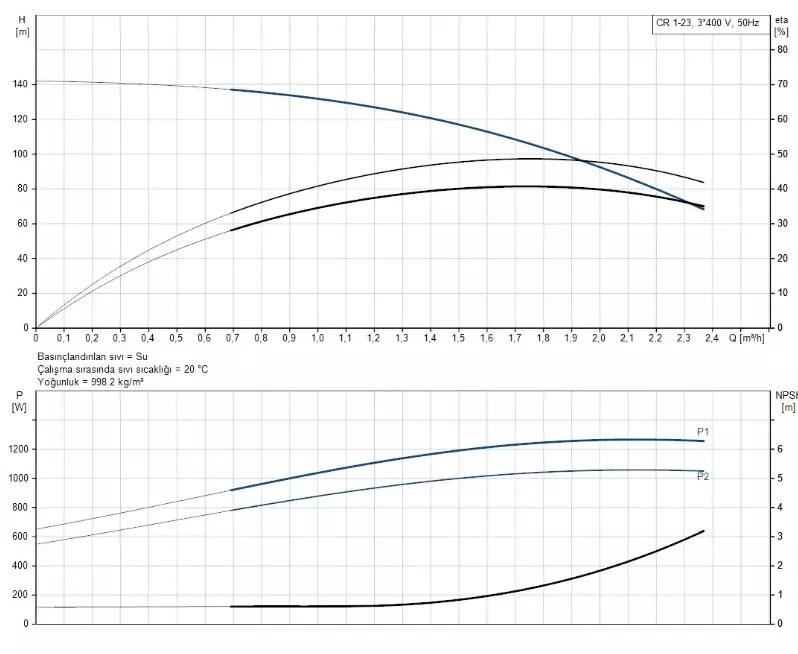 CR1-23 pompa, 23 kademeli güçlü hidrolik yapısı sayesinde CR1-21, CR1-19 ve daha alt modellerden çok daha yüksek basınç üretir. Bu nedenle özellikle büyük ölçekli tesislerde, yüksek basınçlı sistemlerde ve ağır endüstriyel uygulamalarda tercih edilmektedir.