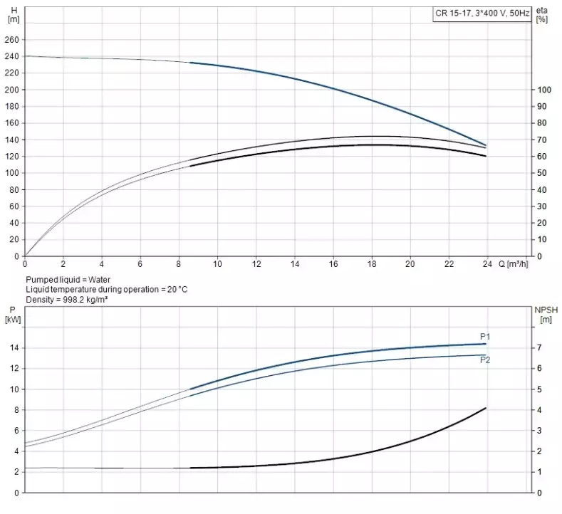 CR15-17 A-F-A-E-HQQE 3x400/690V 50Hz dikey çok kademeli santrifüj pompa, 15 m³/h yüksek debi sınıfında, 17 kademeli ultra yüksek basınçlı hidrolik yapısıyla ağır hizmet gerektiren endüstriyel ve ticari uygulamalar için tasarlanmış üst segment bir pompa modelidir.