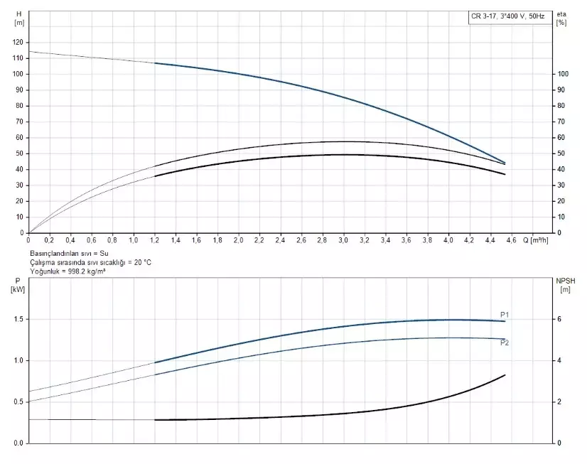 CR3-17 pompa, 17 kademeli hidrolik yapısıyla CR3-15 modelinden daha yüksek basınç üretir ve özellikle yüksek basınç gerektiren kritik hatlarda üstün performans sağlar.