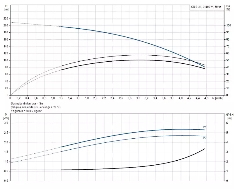 3 m³/h debi sınıfında maksimum basınç gerekiyorsa