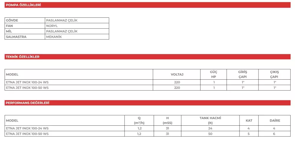 Üretici güvencesiyle sunulan ETNA JET INOX 100-24 WS; hijyenik, uzun ömürlü, paslanmaz çelik gövdeli, kompakt ve verimli bir su basınçlandırma çözümüdür.