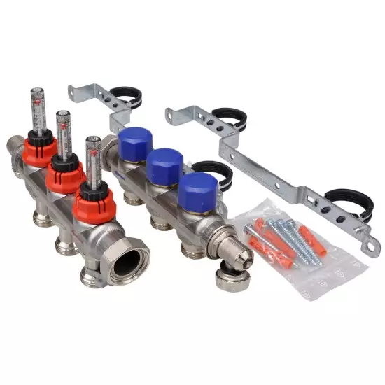 Gidiş hattında her ağızda ayarlanabilir debi göstergesi bulunur; bu sayede sistemde hidronik balanslama kolaylıkla yapılır. Dönüş hattında her ağızda M30 x 1,5 aktüatör çekirdeği mevcuttur. Ayrıca prüjörlü, doldurma/boşaltma vanalı yapısı ve ses yalıtımlı duvar askısı ile eksiksiz bir montaj çözümü sunar.