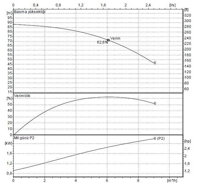 Kapalı vana basma yüksekliği 88,2 m olan model, 1¼” emme ve basma flanşları ile montaj kolaylığı sunar. Radyal çarklı, düşey milli tasarımı sayesinde kompakt boyutlarda yüksek performans elde edilir. Mekanik salmastra ve bilyalı rulman sistemi, pompanın zorlu şartlarda güvenle çalışmasını sağlar.