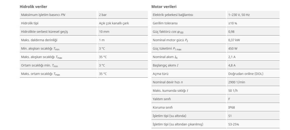 ⚡ Performans: 8 mSS maksimum basma yüksekliği ile etkili drenaj sağlar.